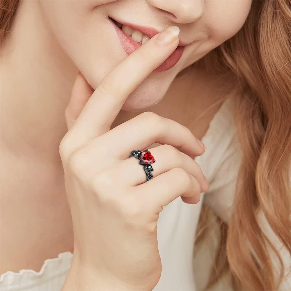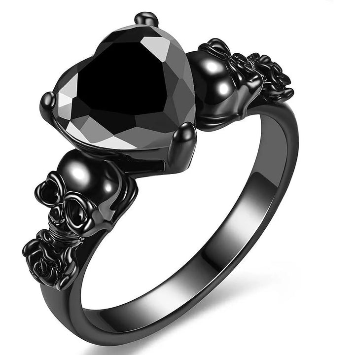 خواتم نسائية على شكل جمجمة قوطية على شكل زهرة وردة سوداء